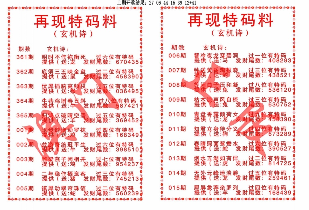 再现特码料